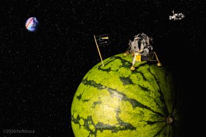 Cette présentation m’a donné l’idée de revisiter une mise-en-scène que j’avais fait à l’époque avec un modèle miniature d’alunisseur Eagle de la mission Apollo. Je l’ai combiné avec un montage de la pochette de l’album (non, ce n’est pas une copie d’une image mais bien une reproduction dans le logiciel de montage photo !)