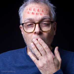 Durant la période des fêtes, j’ai pris congé et profité de cette période pour relaxer un peu. J’ai eu le plaisir de faire quelques siestes en après-midi suivant le dîner. Disons que j’y ai pris goût sans m’en rendre compte et que l’habitude s’est ancrée un peu trop facilement de sorte que le retour au travail est un peu difficile. J’ai constaté un après-midi que j’avais des marques suspectes sur le front…